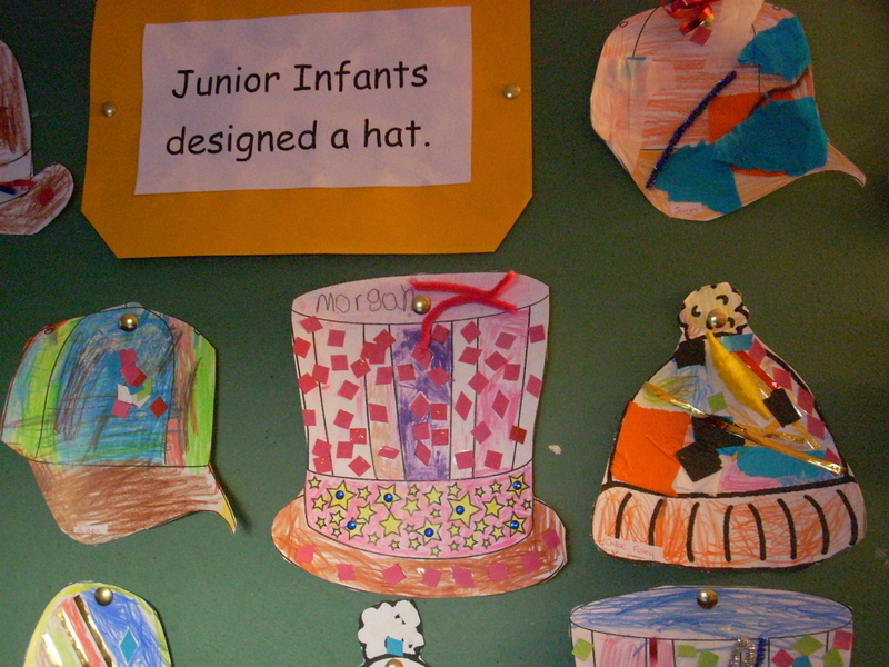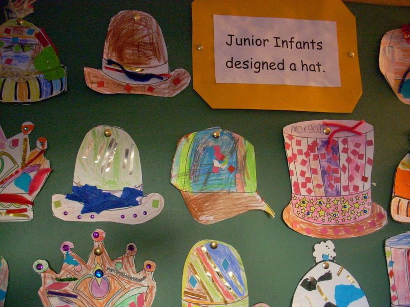 Junior Infants have been busy designing beautiful hats over the past few days. There is a lovely display on the notice board in front of their classroom in the main school building. Philip Treacy watch out!!!