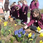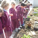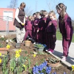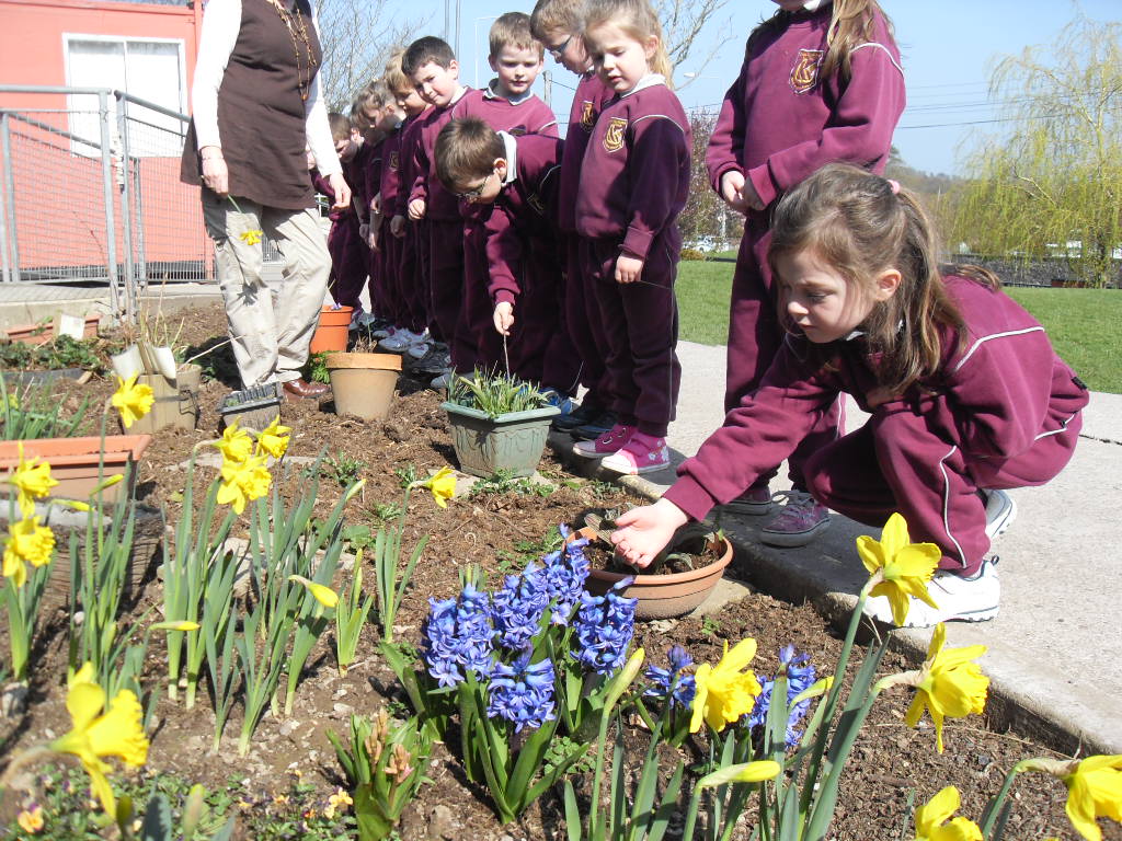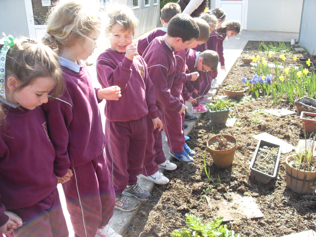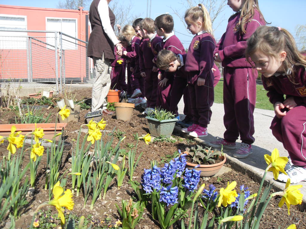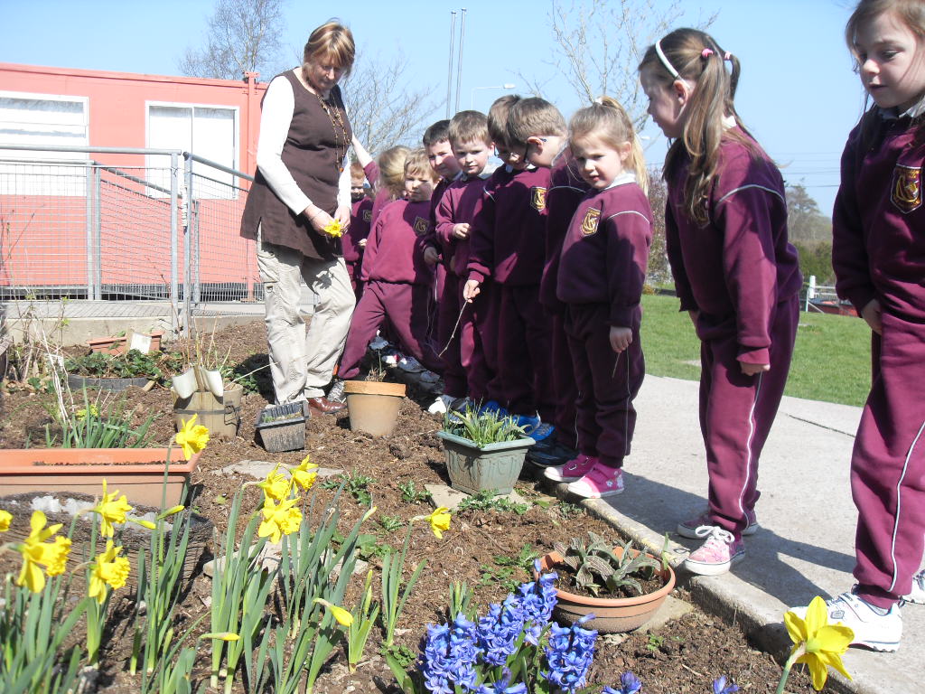 23 Mar 2011 Senior Infants were also admiring the lovely signs of Spring in our school garden. They can be seen here with Mrs Barry who puts great work in maintaining this area.