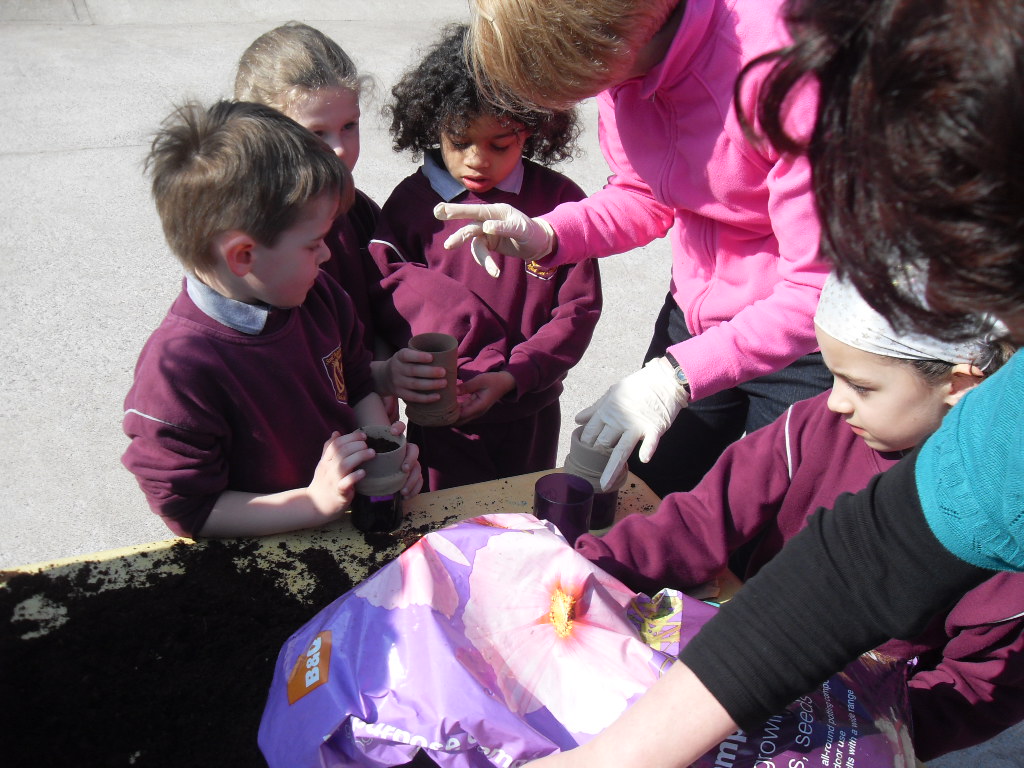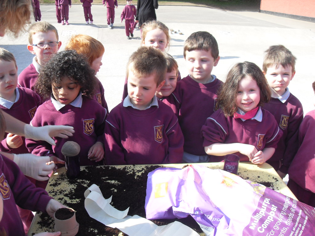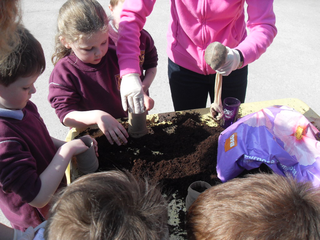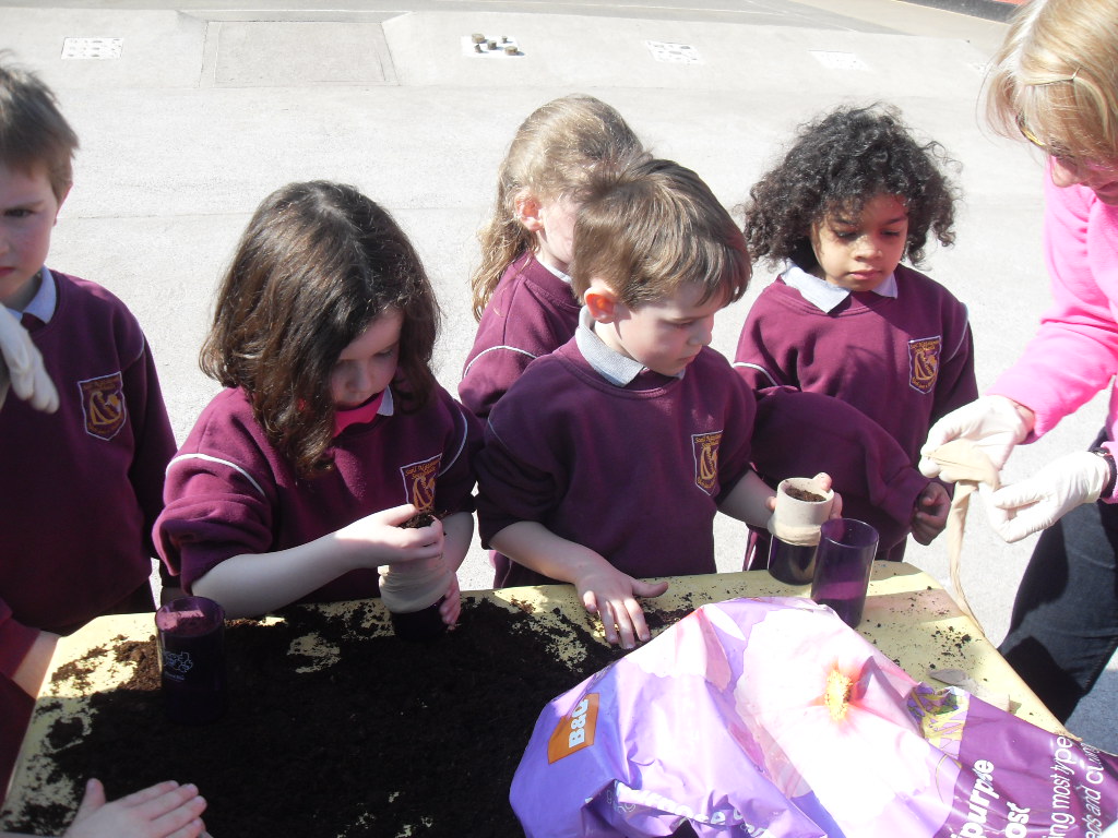 23 Mar 2011 Juniors and the Language class took advantage of the beautiful weather today to do some planting. They were making sock friends. We hope to see some great results in a few weeks.