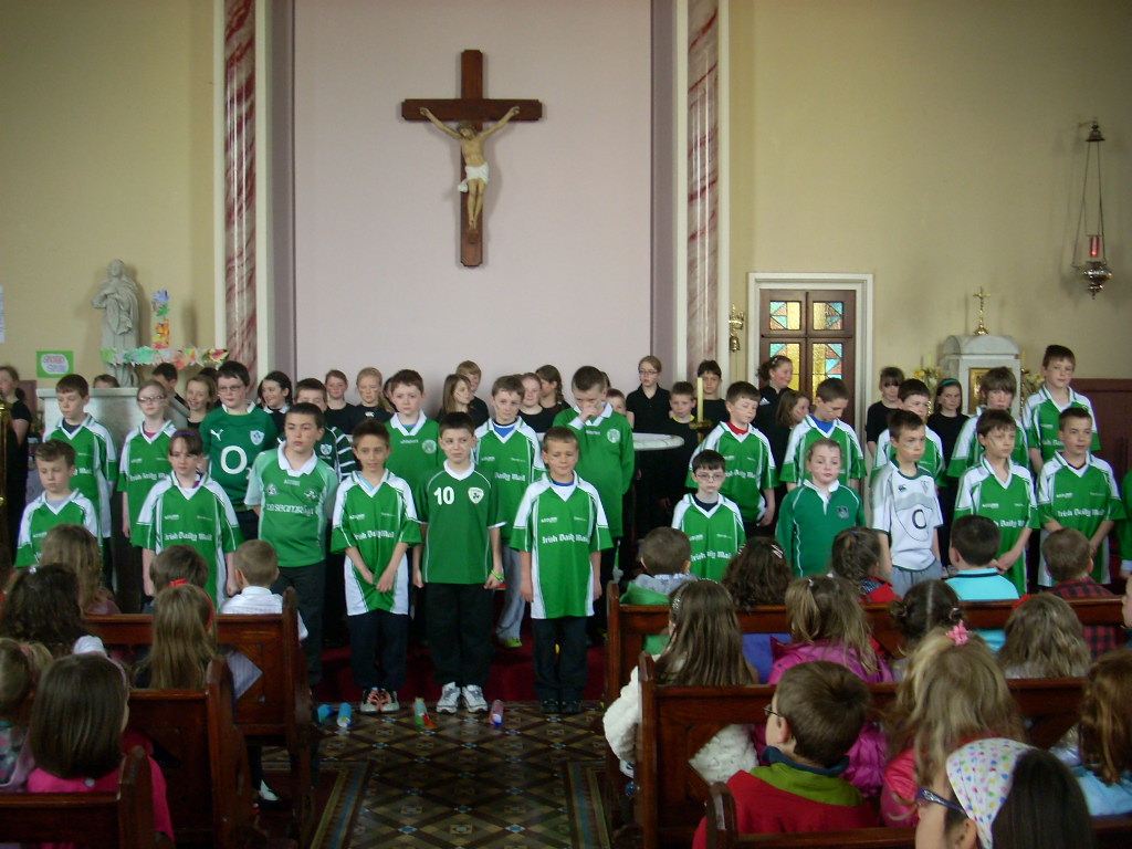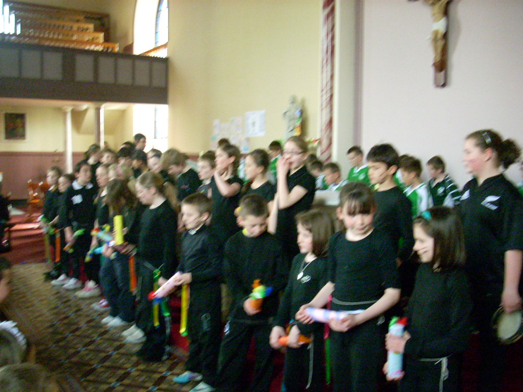 Best of luck to all the boys and girls in rang 3 and rang 4 who are taking part in cor fheile in city hall on Monday night. The other classes in school were allowed to watch their dress rehersal today and were very impressed!! Well done to all involved!