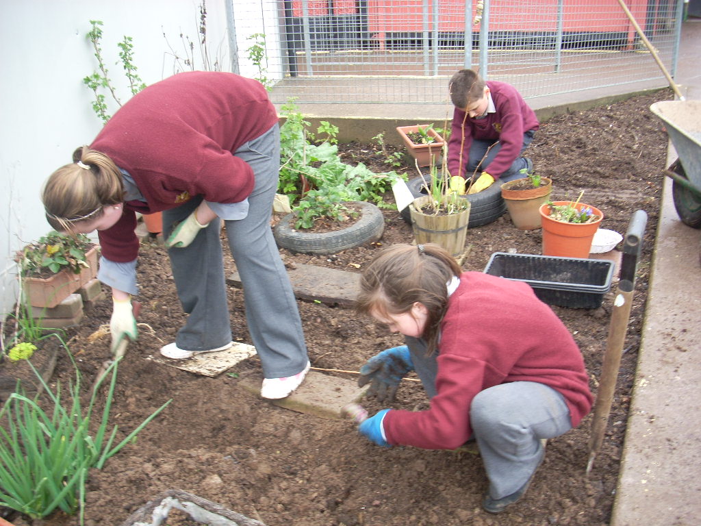 Here are some of the children in rang 5 helping with the school garden. The garden is looking great at the moment and adds lovely life and colour to the school.