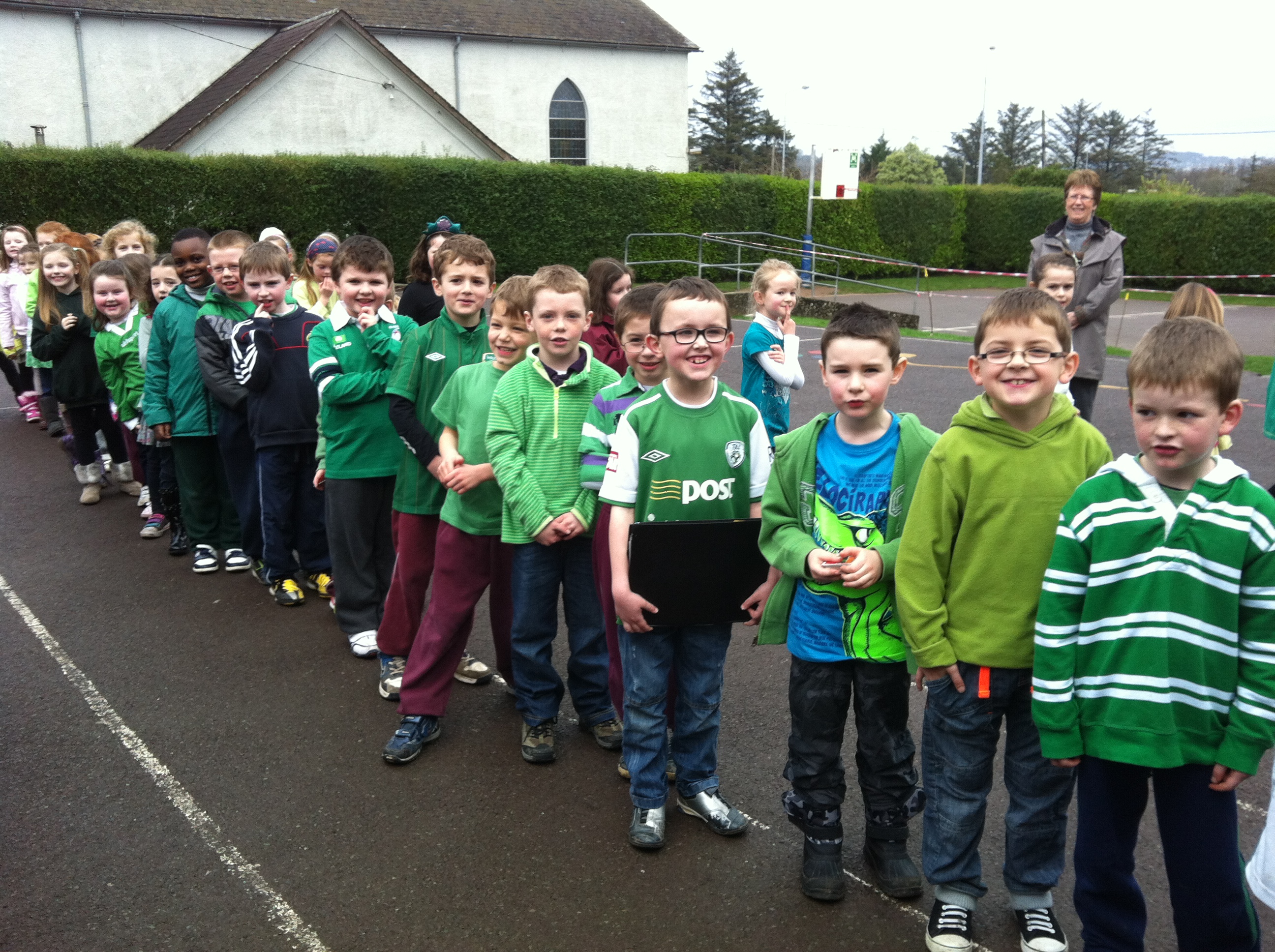 The Green Schools Committee would like to thank all the pupils, parents and staff for their help on Green Schools Day. We were greeted with a sea of green on Friday morning. The pupils made a special effort with their green clothes and this certainly added to the sense of occasion on the day. The junior side of the school planted seeds with the help of teachers, SNA’s and older pupils. They practiced their green code and were shown a power point presentation on the importance of the three R’s. The older children watched a DVD based on our anti litter campaign and also viewed a power point presentation based on litter and waste. Here are some photos from the day.