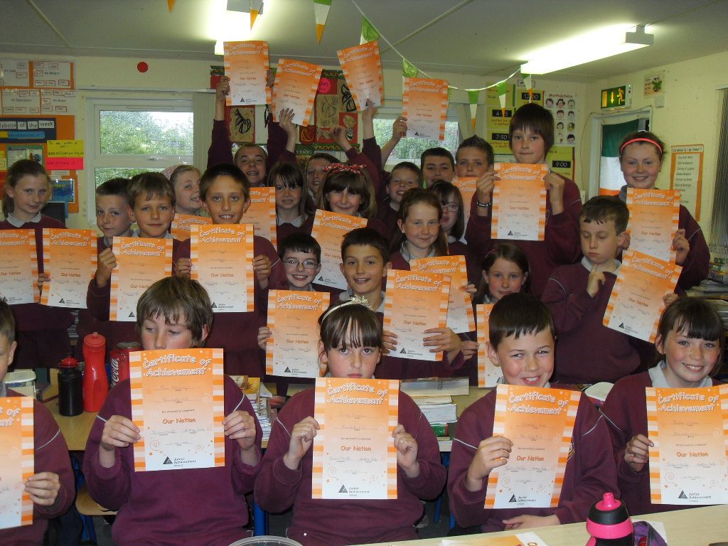 The boys and girls in 4th Class recently completed the Junior Achievement Programme “Our Nation”, under the excellent guidance of Volunteer, Mr. Graham O’Keeffe of Abbott Ireland, Carrigtwohill (also a parent in our school). During this series of workshops the pupils studied business operations, resources and economic issues in Ireland. They learned about the three different forms of Business and were shown the steps involved in starting a business – indeed the students were so interested in the whole programme that it became very evident as the weeks went by that we have some future entrepreneurs in our midst !!
