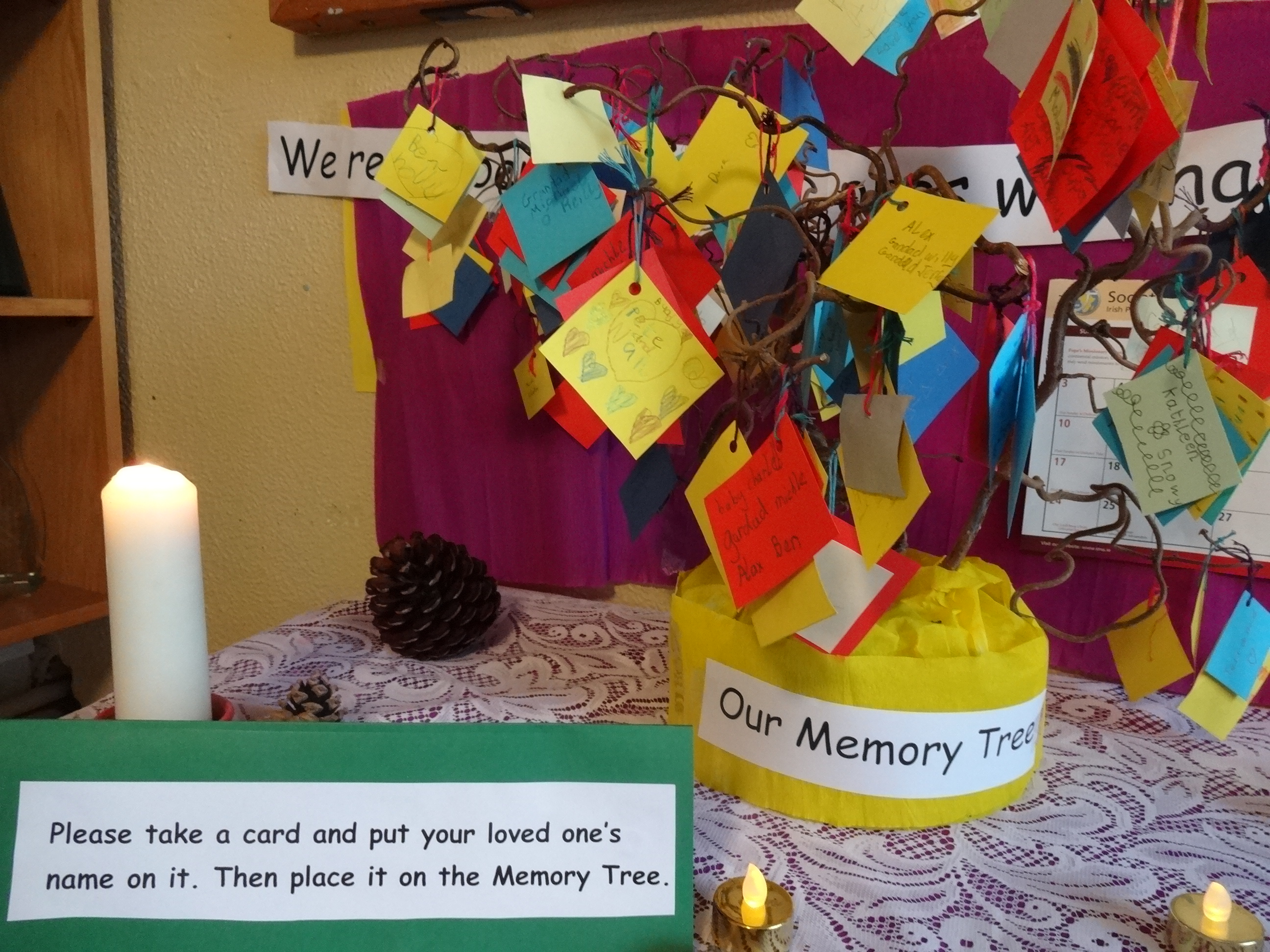 During the month of November a “Memory Tree” was set up in our school “Sacred Space”, which is located just inside the main door, opposite the office. The pupils and staff were invited, if they wished, to draw a picture or write the names of their loved ones who have died and place it on the Memory Tree, so that our school community could unite in remembering our loved ones who have passed on. A candle was lit on the Sacred Space each day, in their memory. At the end of the month the names were taken down from the Memory tree and Fr. Sean has suggested that these slips of paper will be burnt at the Easter Vigil on Holy Saturday night in Shanbally Church. We will think again of those loved ones who have died, on that night and keep them in our thoughts and prayers.