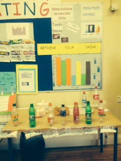 The younger classes were invited to the halla today to look at the display and hear all about the findings. Staff were also heard discussing the amounts of sugar on display in the staff room and I think it’s safe to say we’ll all think twice the next time we’re reaching for a fizzy drink!!